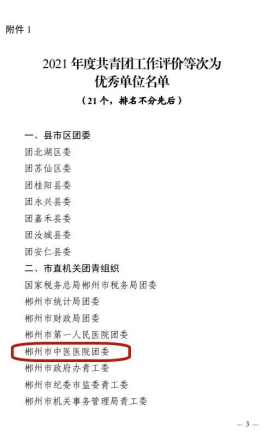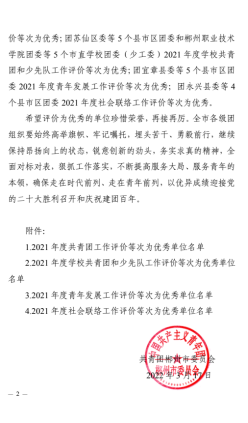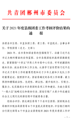 經(jīng)團(tuán)市委綜合評價(jià),我院團(tuán)委被評為郴州市2021年度共青團(tuán)工作優(yōu)秀單位。