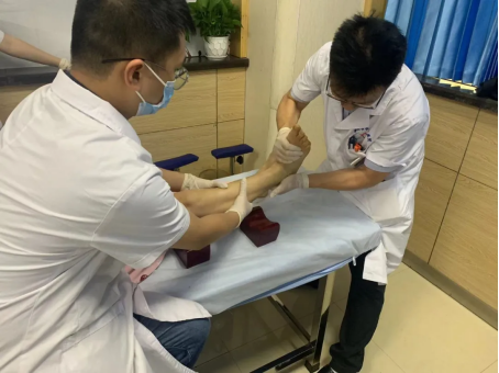 中醫(yī)正骨中心現(xiàn)有醫(yī)生2人,護士4人,在佛山市中醫(yī)院長期進修學習佛山傷科正骨療法,學成回院后組建“中醫(yī)正骨中心”,以佛山傷科正骨療法、中醫(yī)骨傷理論及“正骨十四法”為基石,結(jié)合現(xiàn)代醫(yī)學技術(shù),采取中西醫(yī)結(jié)合的方法,針對各種常見的骨與關(guān)節(jié)損傷、骨病、軟組織扭傷等開展門診與住院治療。其中,骨折、脫位的中醫(yī)正骨保守治療是特色項目,充分展現(xiàn)了中醫(yī)藥的獨特魅力。