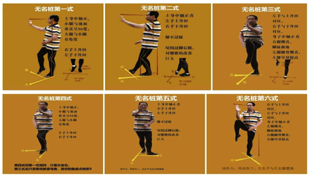 無(wú)名樁動(dòng)作簡(jiǎn)單、易學(xué),時(shí)間短,而且得氣快,見效快捷,因不用意念,不會(huì)出偏。六個(gè)動(dòng)作,共六分鐘,動(dòng)作到位了,3一5秒就產(chǎn)生酸脹感,而且是酸脹難忍,有如受刑般。雖說(shuō)只有六分鐘,它卻可外練人體的九大關(guān)節(jié),即:頸、肩、肘、腕、指(手、腳指)、腰、胯、膝、腳踝。內(nèi)練十二條經(jīng)絡(luò),肩膀酸脹,是在練手三陰、手三陽(yáng);腿部酸脹,是在練足三陰、足三陽(yáng)。練時(shí)有如受刑,結(jié)束后,身輕如燕。