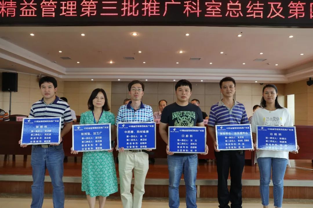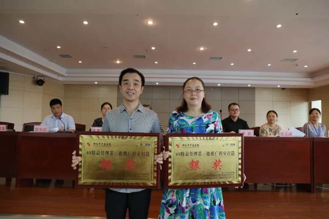 隨后,院領(lǐng)導(dǎo)為第三批樣板科室頒發(fā)“金、銀、銅獎(jiǎng)項(xiàng)”,并為第四批推廣科室——放射科、制劑室與加工廠(chǎng)、中藥房與藥材庫(kù)房、口腔科、體檢中心與治未病中心、功能科負(fù)責(zé)人授牌。