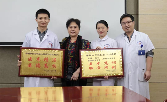 2019年11月6日,心情激動(dòng)的謝阿姨來(lái)到郴州市中醫(yī)醫(yī)院黨委書(shū)記謝天喜的辦公室門前,懷里抱著兩塊牌匾,一塊寫(xiě)著“醫(yī)術(shù)精湛、醫(yī)德高尚”,一塊寫(xiě)著“醫(yī)術(shù)高明、服務(wù)周到”。謝阿姨一直說(shuō)著感謝的話,樸實(shí)的言語(yǔ),表達(dá)的卻是她對(duì)這次中醫(yī)特色治療的贊譽(yù)之情,是醫(yī)患之間彼此的真誠(chéng)與和諧,是對(duì)醫(yī)護(hù)人員無(wú)私奉獻(xiàn)的最好回報(bào)。