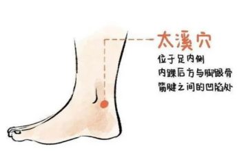 位置:足內(nèi)側(cè),內(nèi)踝后方與腳跟骨筋腱之間的凹陷處。