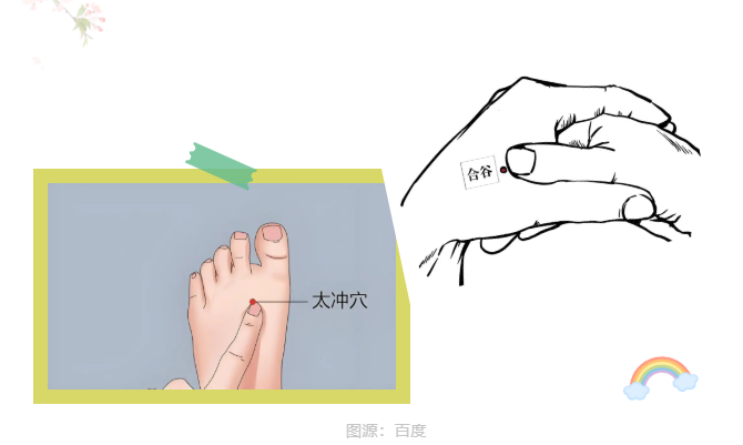 按摩穴位:按摩太沖穴、合谷穴等穴位,疏肝理氣,緩解頭痛、失眠等癥狀。