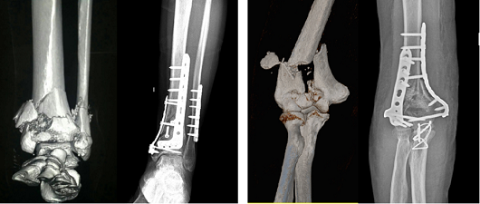 脛腓骨遠(yuǎn)端粉碎性骨折治療前、后 肘關(guān)節(jié)肱骨遠(yuǎn)端粉碎性骨折治療前、后